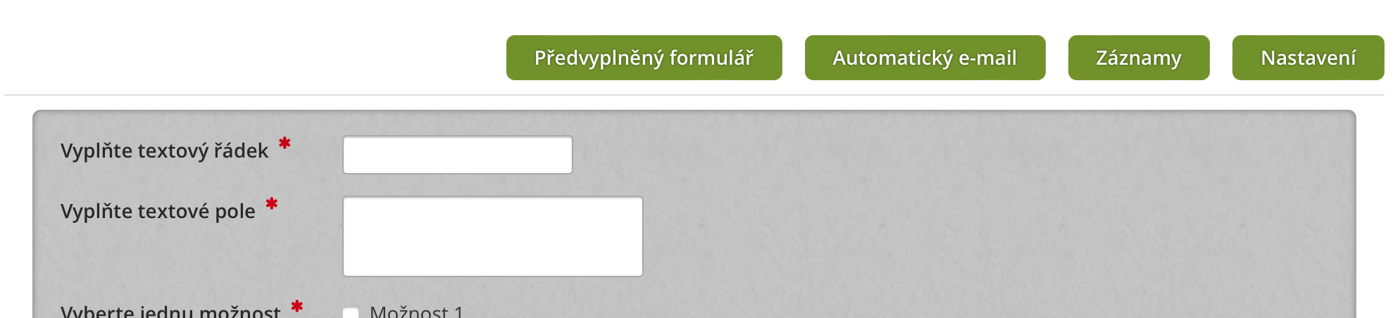 Existují případy, kdy potřebujete návštěvníkovi nabídnout formulář s již předvyplněnými daty. Co bude v datech uvedeno, pak závisí na externích potřebách. Např. rozešlete newsletter s odkazy na přihlášky do třech kroužků. Všechny kroužky mají stejný formulář na webu, ale pomocí třech různých odkazů již za návštěvníka předvyplníte tři různé možnosti. Tzn. odkaz bude nositelem informace o předvyplněných položkách.